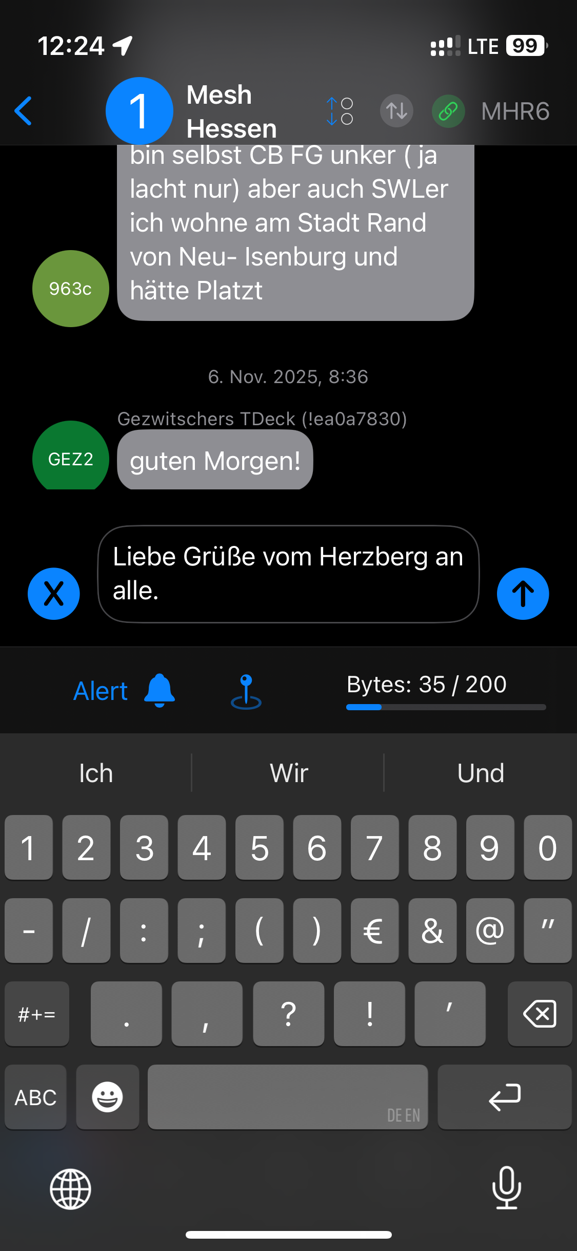 Eine Nachricht im Primary Channel wird quasi „an alle“ gesendet. Der Kanal „Mesh Hessen“ ist ein Kanal für alle Mesh Hessen Mitglieder. Hier können Sie gerne einen Gruß vom Herzberg hinterlassen und bekommen mit etwas Geduld bestimmt auch eine Antwort von einer Node, die Sie empfängt.